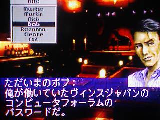酒場でただいまのボブからヴィンスのパスワード(コンピュータクロックアップサービス)入手。
