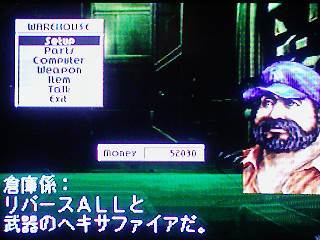 アジトのショップ倉庫係から戦利品(リバースオール、ヘキサファイア)を受け取る。